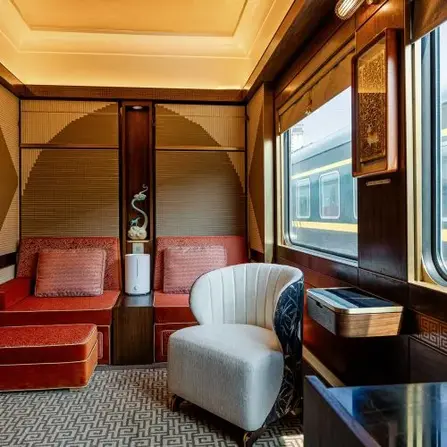 Elegant furnishings, premium amenities, and personalised touches create a spacious, stylish retreat for the ultimate rail journey.